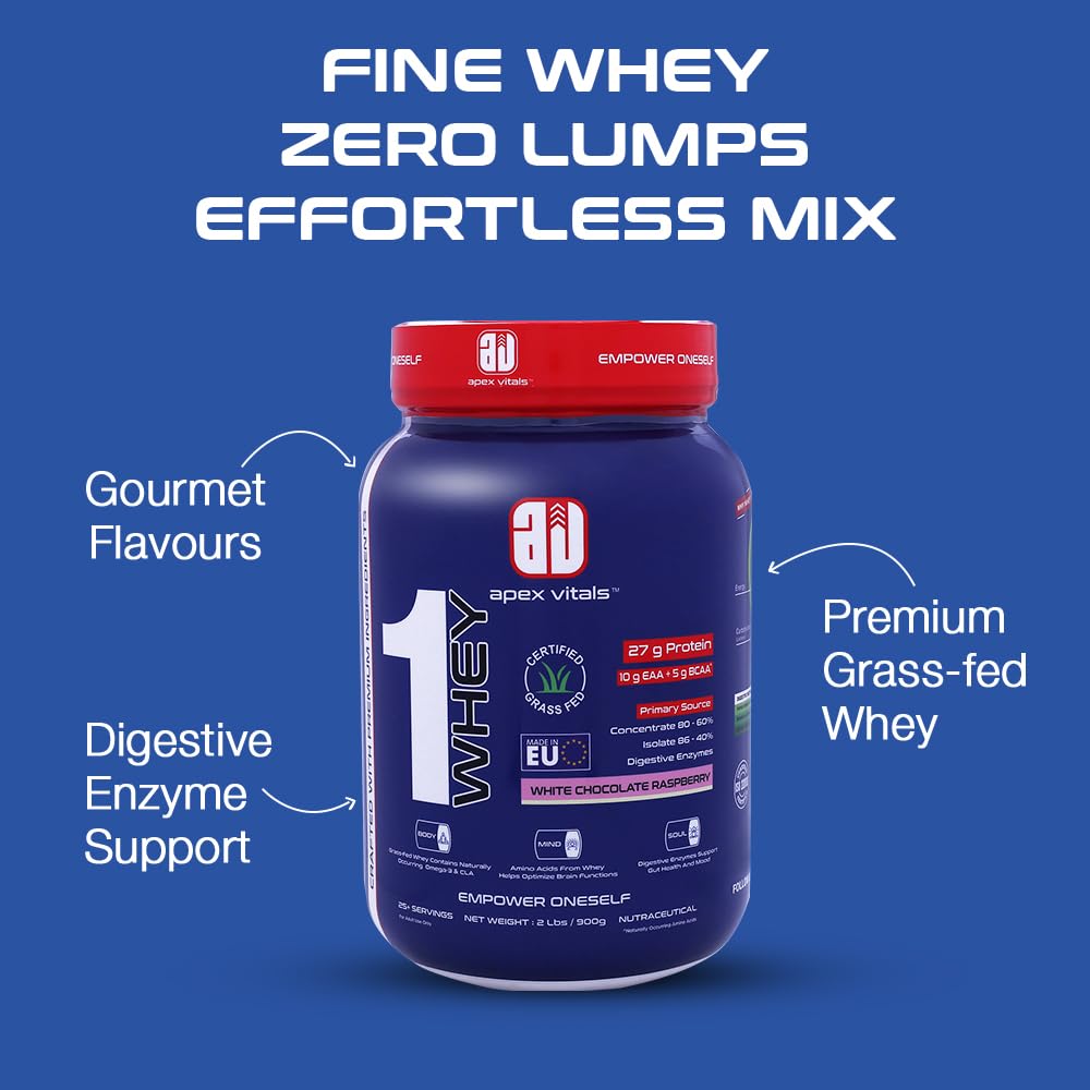 - Premium Grass-Fed Whey Blend: Apex Vitals 1 Whey contains a blend of grass-fed whey protein sourced from Europe, delivering a smooth, natural texture without guar or xanthan gums. Its high-quality flavoring offers an enhanced taste experience.